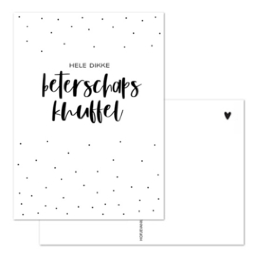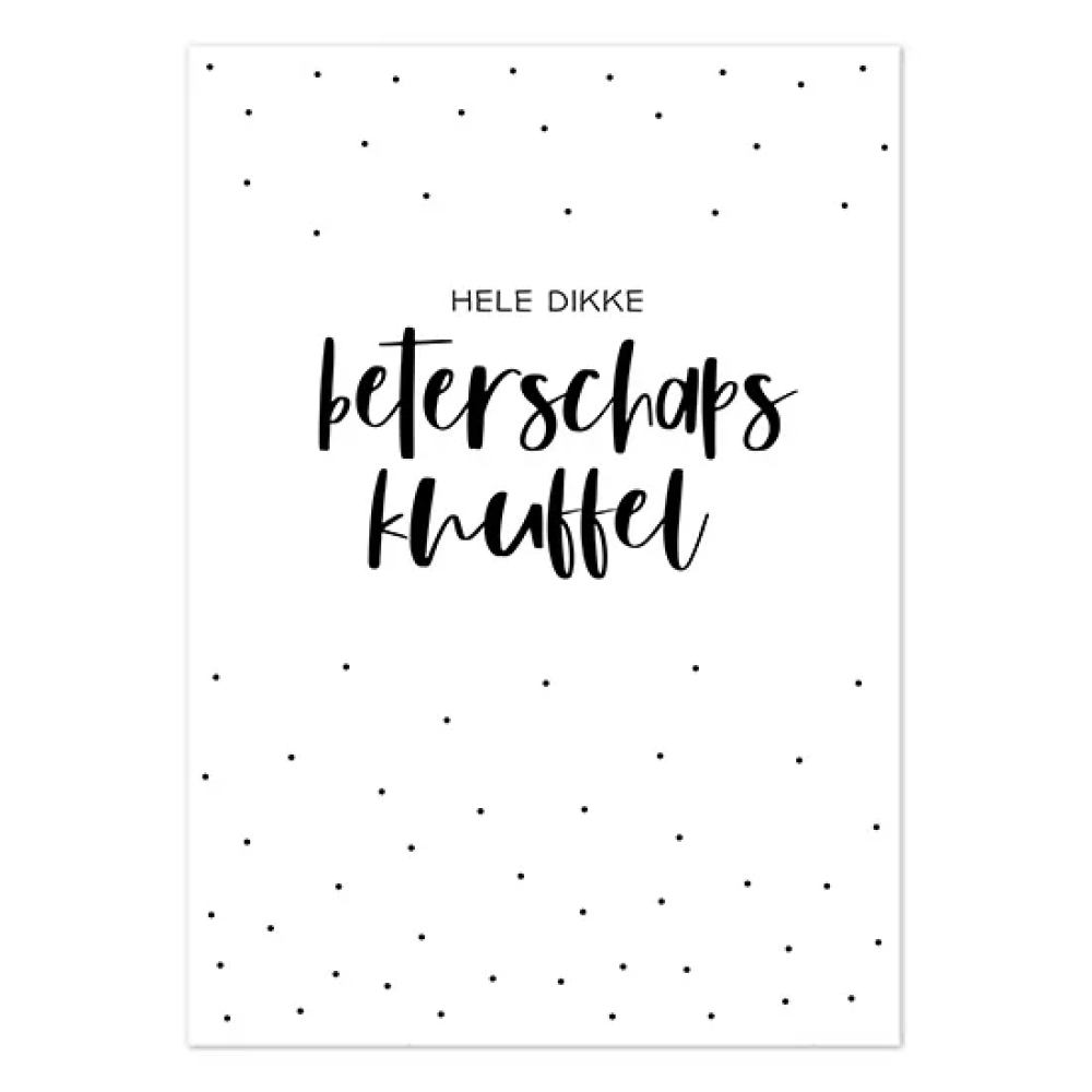 Iemand beterschap wensen? Stuur een beterschapsknuffel of versier je cadeautje, fruitmand of bosje bloemen met dit lieve kaartje.