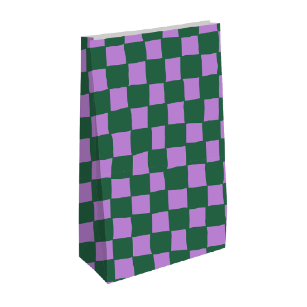 Blokbodemzak M | Groen/Paars 14x8x26cm geblokt | 14 x 8 x 26 cm