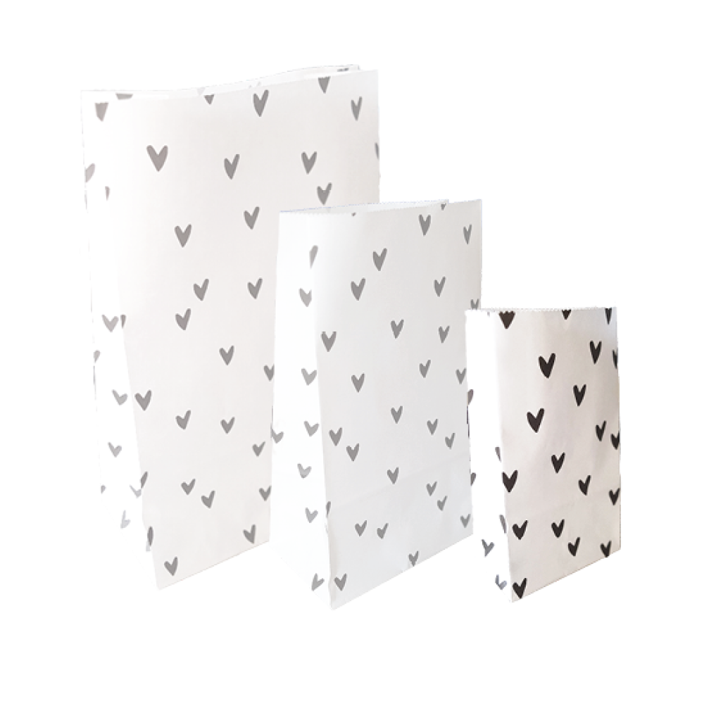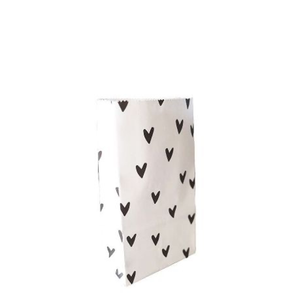 Blokbodemzak S | Hartjes zwart | 9 x 5 x 16 cm