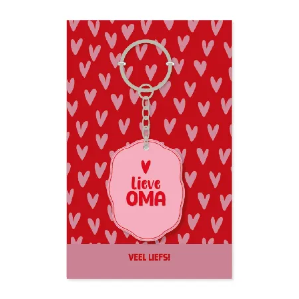 Deze lieve PVC sleutelhanger in ovale vorm met sierlijk kader is een prachtig klein gebaar voor een hele bijzondere oma. De sleutelhanger wordt geleverd met een kaartje met hartjes en de tekst ‘Veel liefs’ – perfect voor een verjaardag, bedankje of zomaar een verrassing.