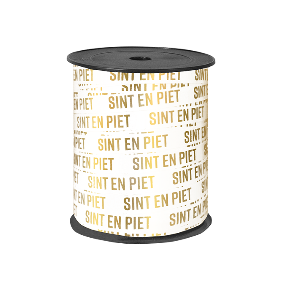 Maak elk Sinterklaascadeau extra feestelijk met dit witte cadeaulint voorzien van gouden opdruk van Sint & Piet.