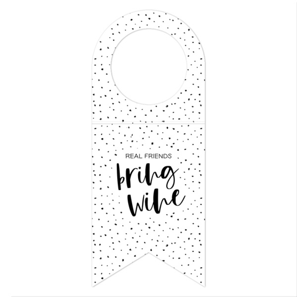 Dit label is speciaal voor een gezellige borrel of een etentje met je gezelligste vrienden, 'Real friends bring wine!'.