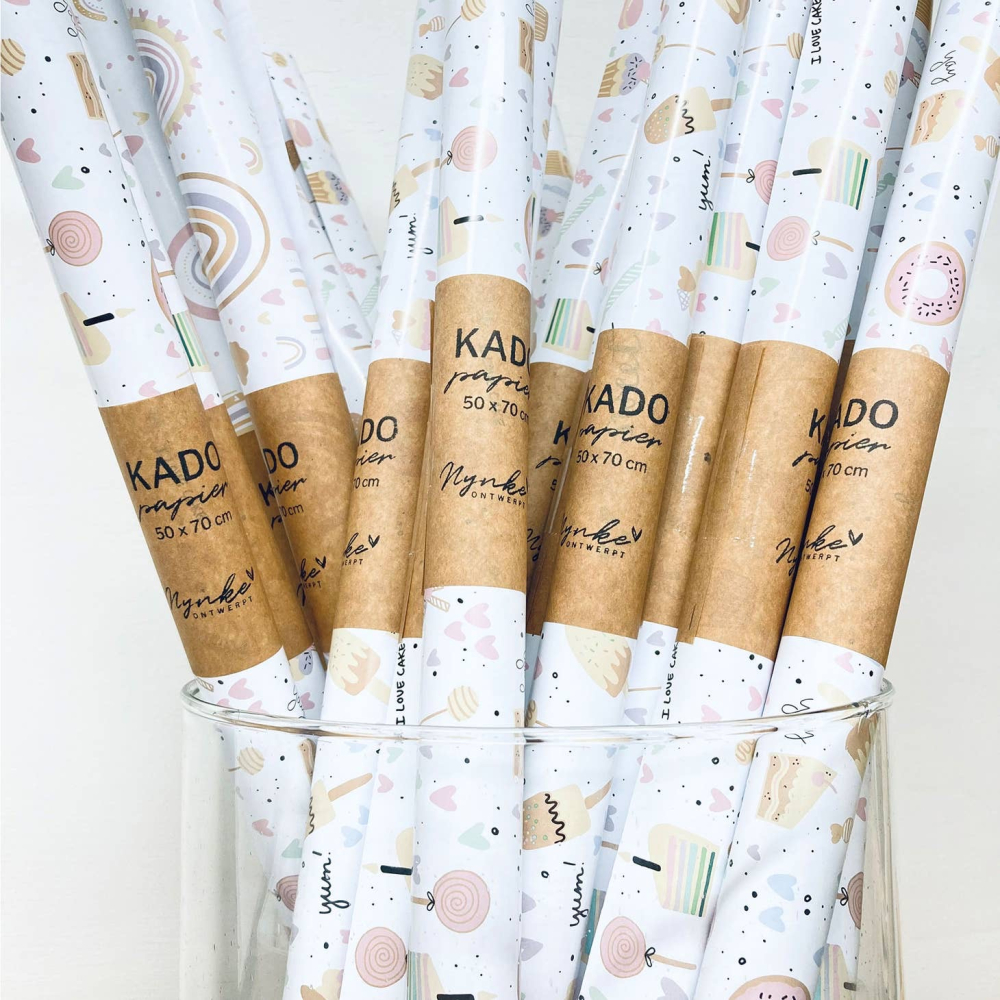 Inpakpapier speciaal voor kinderen in zachte pastel kleuren. Je pakt je cadeautje feestelijk in met dit kadopapier.