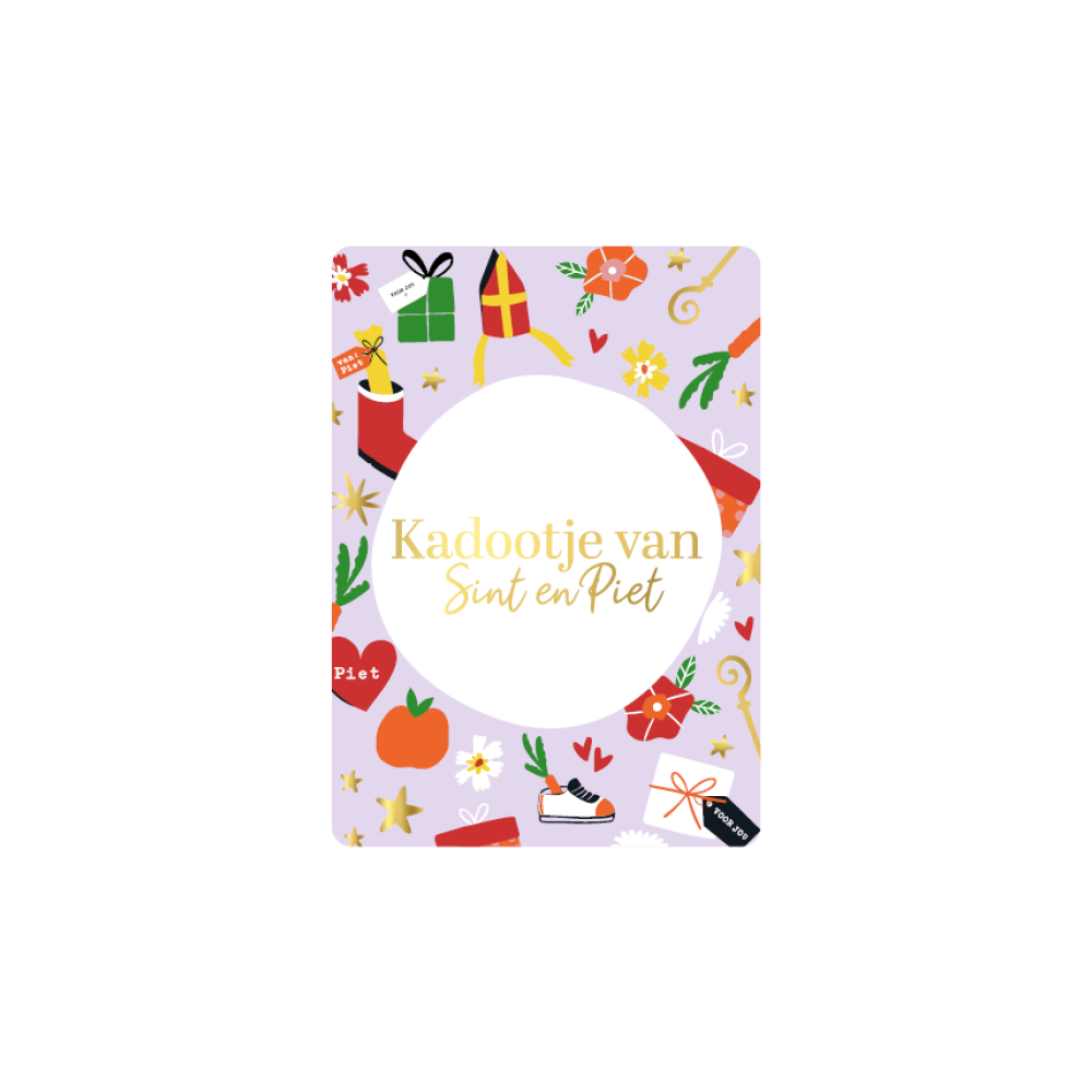 Kadokaartje A7 | Kadootje van Sint en Piet | lila, goudfolie