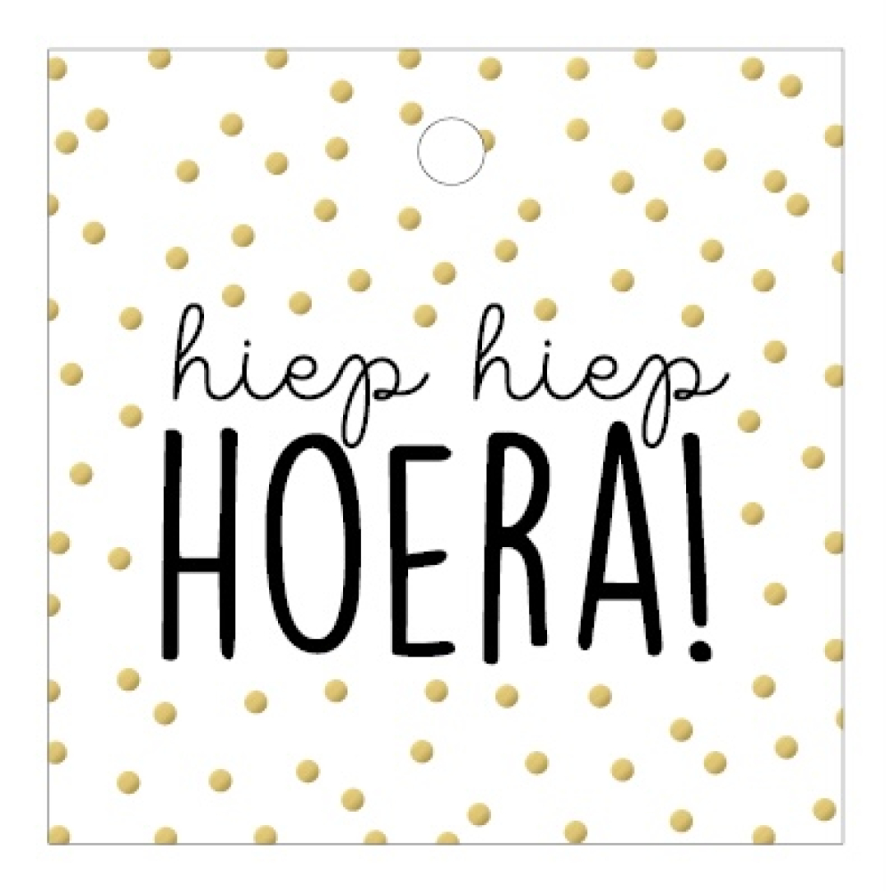 Kadolabel | Hiep hiep hoera | gouden stipjes