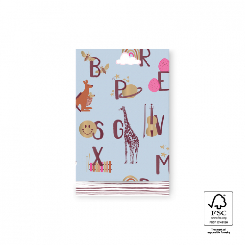Kadozakje | alfabetdessin | licht blauw/goud | M 12x19 cm | 5 stuks