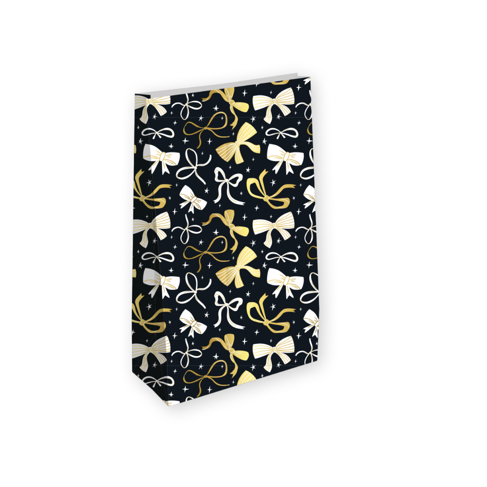 Blokbodemzak M | zwart/goud | strikjes | 14 x 8 x 26 cm