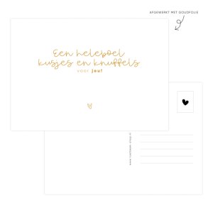 Ansichtkaart | Kusjes en knuffels | Goudfolie