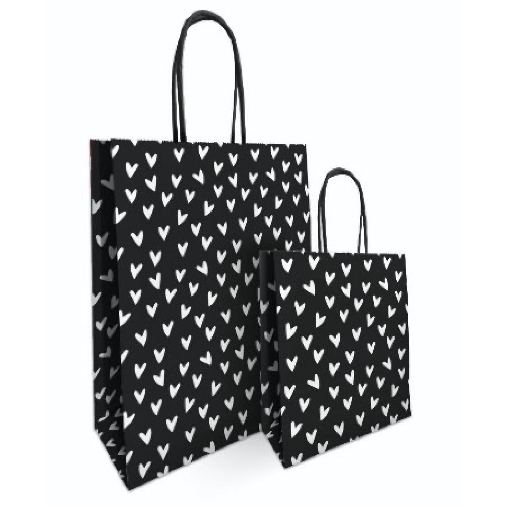 Papieren kraft tas | hartjes zwart/wit | 18x8x22cm