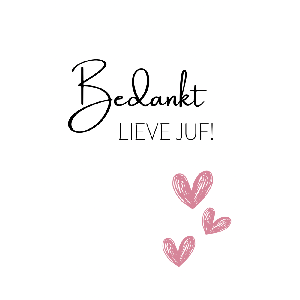 Postkaart | Bedankt lieve juf | roze hartjes