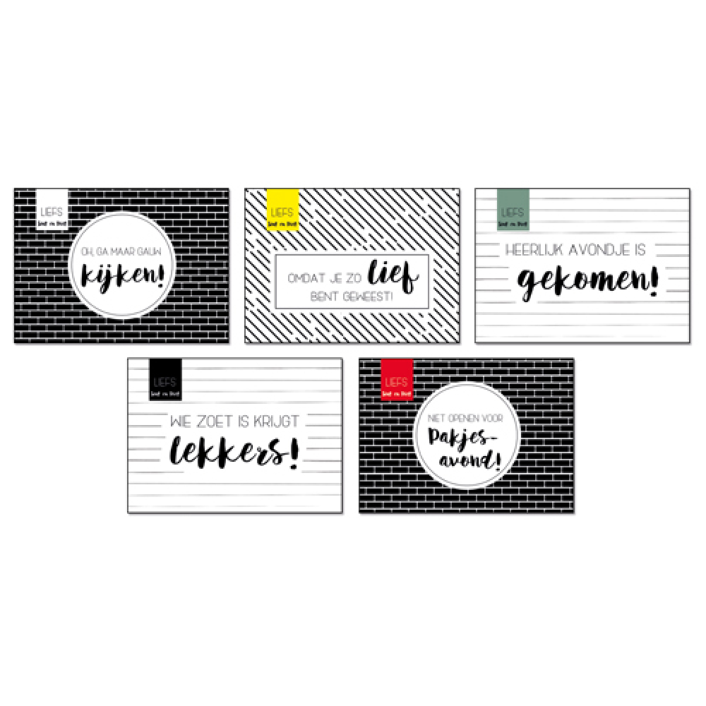 Een set van 5 verschillende sinterklaaskaarten, zie afbeelding. Onze kaarten hebben een afmeting van 10 x 15 cm.