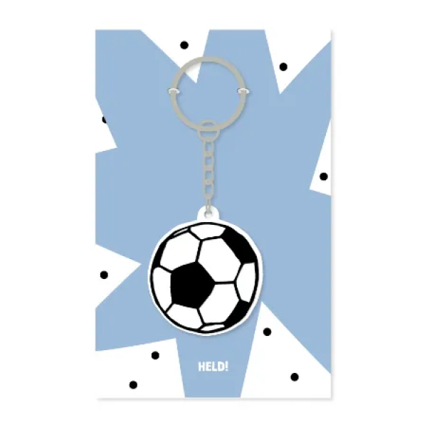 Deze zwart-witte voetbal sleutelhanger wordt geleverd met een flitsend kaartje met de tekst ‘Held’. Een perfecte verrassing voor voetbalfans, sportieve tieners of als klein gebaar om te laten weten dat iemand een echte held is.