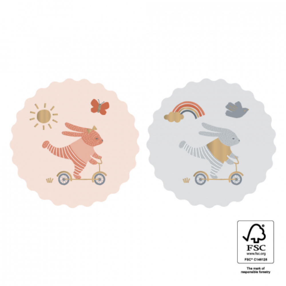 Stickers met confetti op de achtergrond en de teksten For you en Party Time in goud folie.