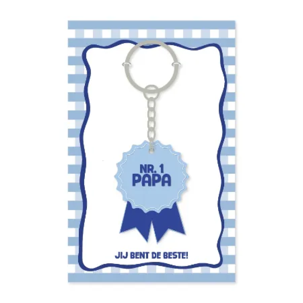Deze blauwe medaille sleutelhanger laat zien dat papa nummer één is. De sleutelhanger wordt geleverd met een bijpassend kaartje met de tekst ‘Jij bent de beste’. Perfect voor Vaderdag, een verjaardag of zomaar om papa in het zonnetje te zetten.