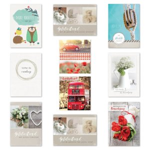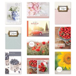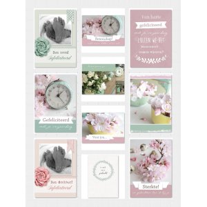 De set bestaat uit 10 stuks dubbele wenskaarten van 10x15 cm